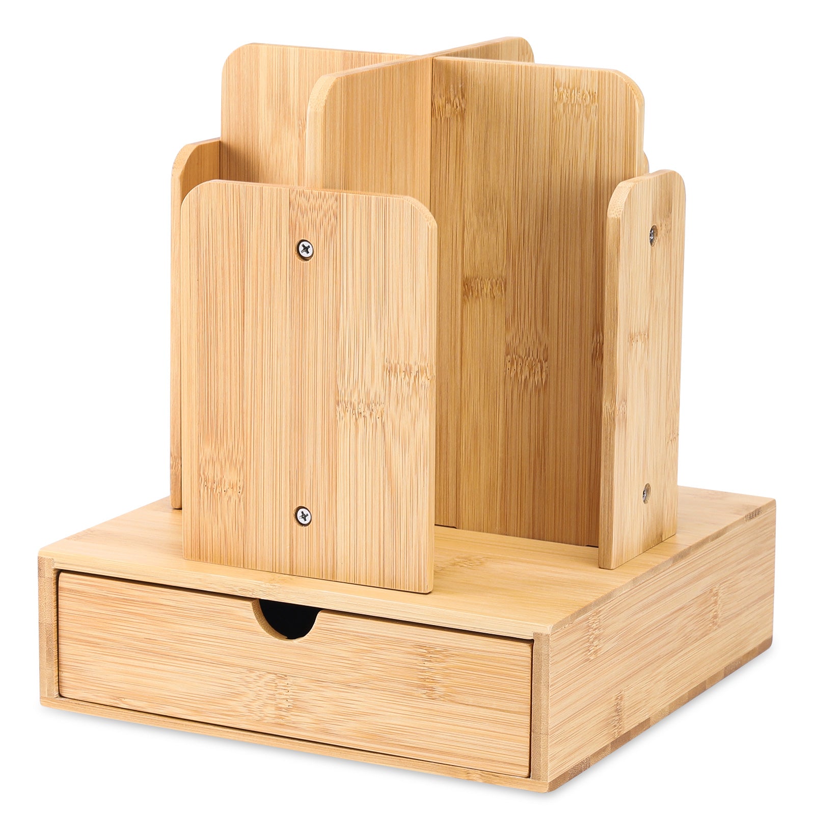 Bamboo coffee organizer with 4 compartments and drawer UB072
